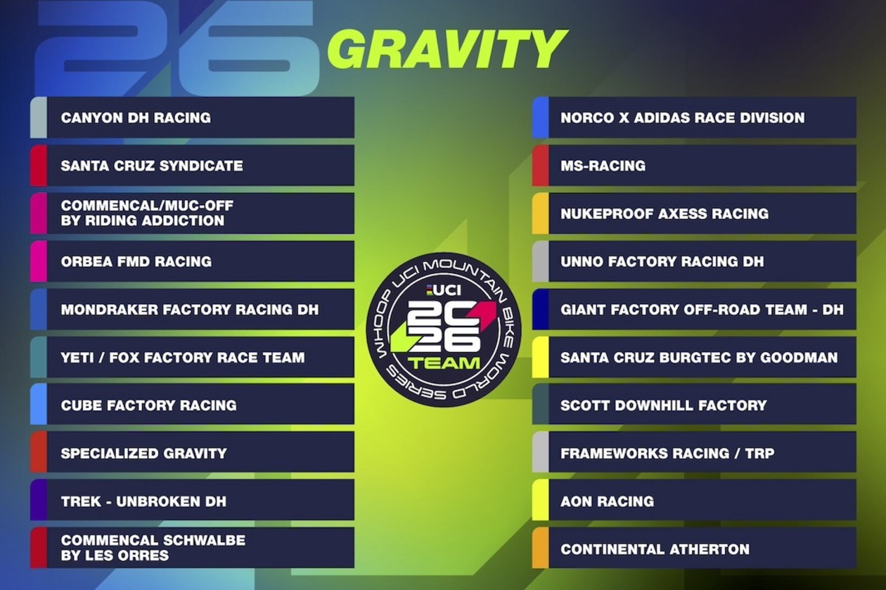 Potwierdzono listę 20 drużyn, które utworzą grono zespołów WHOOP UCI Mountain Bike World Series na sezon gravity 2026. Ich składy zawodnicze aż roją się od zwycięzców rund Pucharu Świata UCI Downhill, wielokrotnych triumfatorów klasyfikacji generalnych cyklu oraz nowych pretendentów, którzy chcą rzucić wyzwanie dotychczasowej czołówce w walce o miejsca na podium.