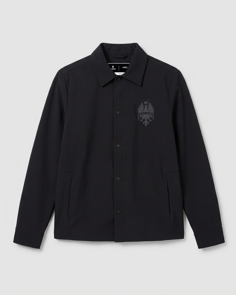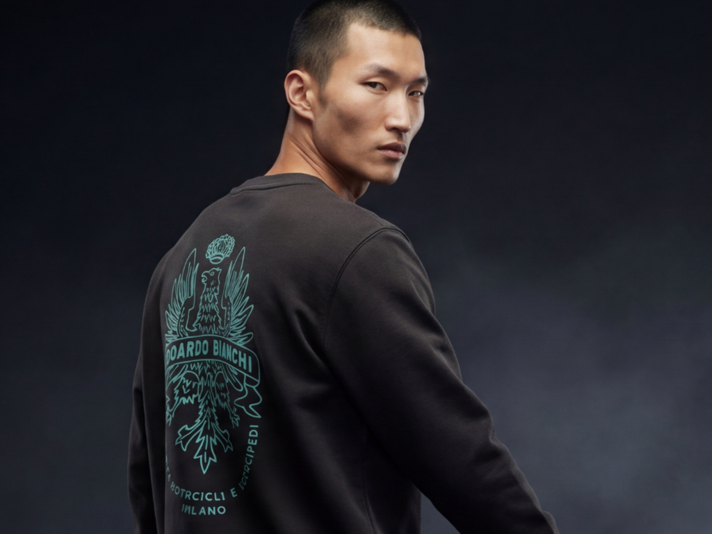 Teal Blue jest współczesną interpretacją klasycznego celeste. Deep Burgundy ma odwoływać się do historycznych korzeni marki. Uzupełnieniem są Cream oraz Off White, które nadają całej linii bardziej uniwersalny i miejski charakter. To istotny detal, bo Bianchi świadomie unika prostego kopiowania własnej legendy. Zamiast budować wszystko wokół klasycznego celeste, próbuje przesunąć estetykę w stronę bardziej dojrzałego produktu lifestyle, który ma funkcjonować poza światem stricte kolarskim. W kolekcji znalazły się między innymi overshirt wykonany z matowego technicznego materiału, kurtka przeciwdeszczowa z gradientowym wykończeniem, bluza z kapturem o luźnym kroju wykonana w całości z bawełny, klasyczna bluza crewneck z historycznym logo orła z lat sześćdziesiątych, polo oraz seria pięciu koszulek. Każdy element dostępny jest zarówno w wersji damskiej, jak i męskiej, w rozmiarach od S do XXL.
